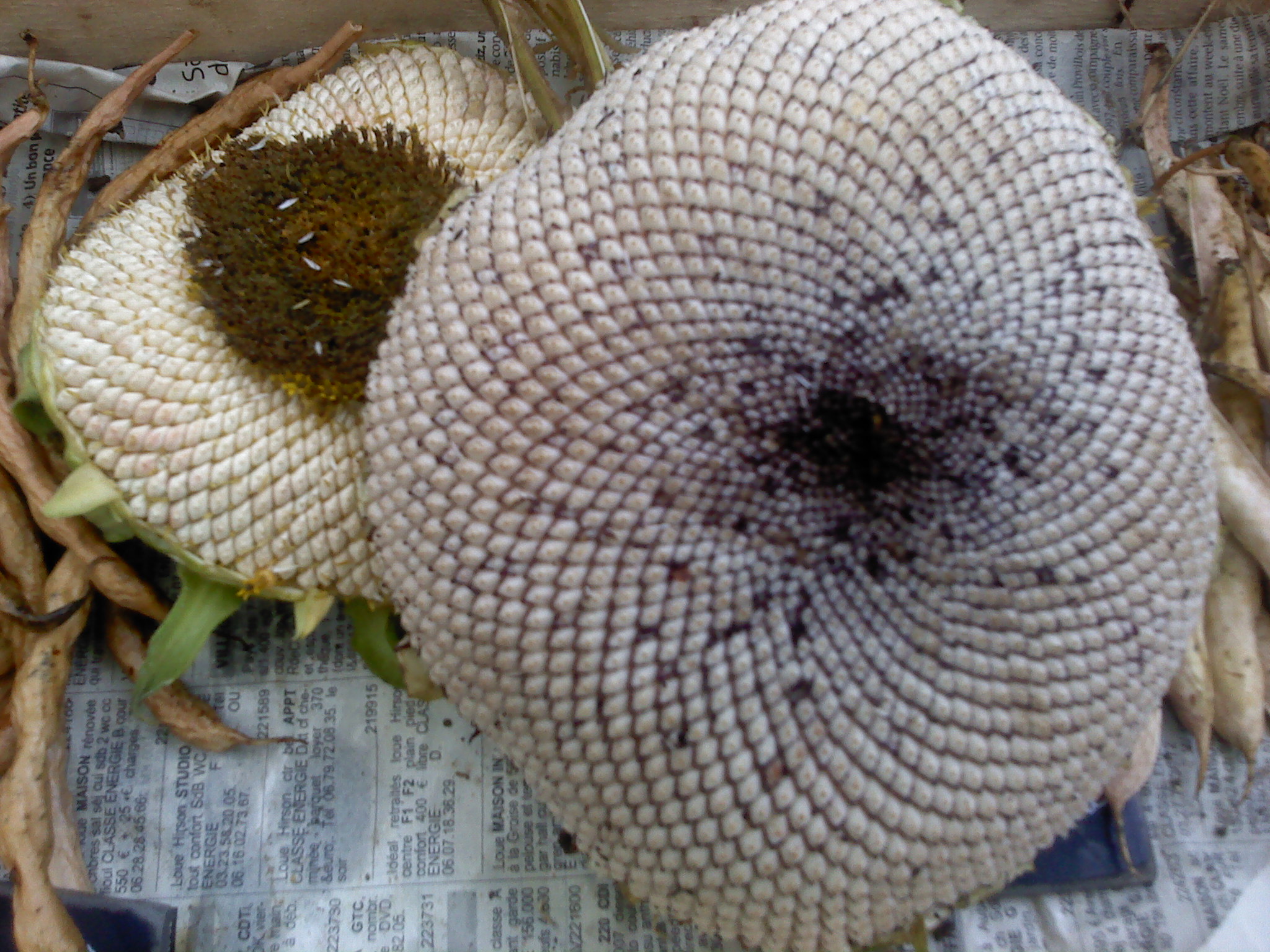J'ai du couper deux têtes de tournesol, qui étaient à terre.