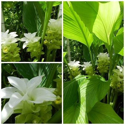 Bien que j'utilise chaque jour la poudre de curcuma (dans les caris, les sauces, les haricots...), c'est ma première tentative de sa culture, je ne suis pas déçue. Voici quelques photos des 3 plants que j'ai mis en terre :
