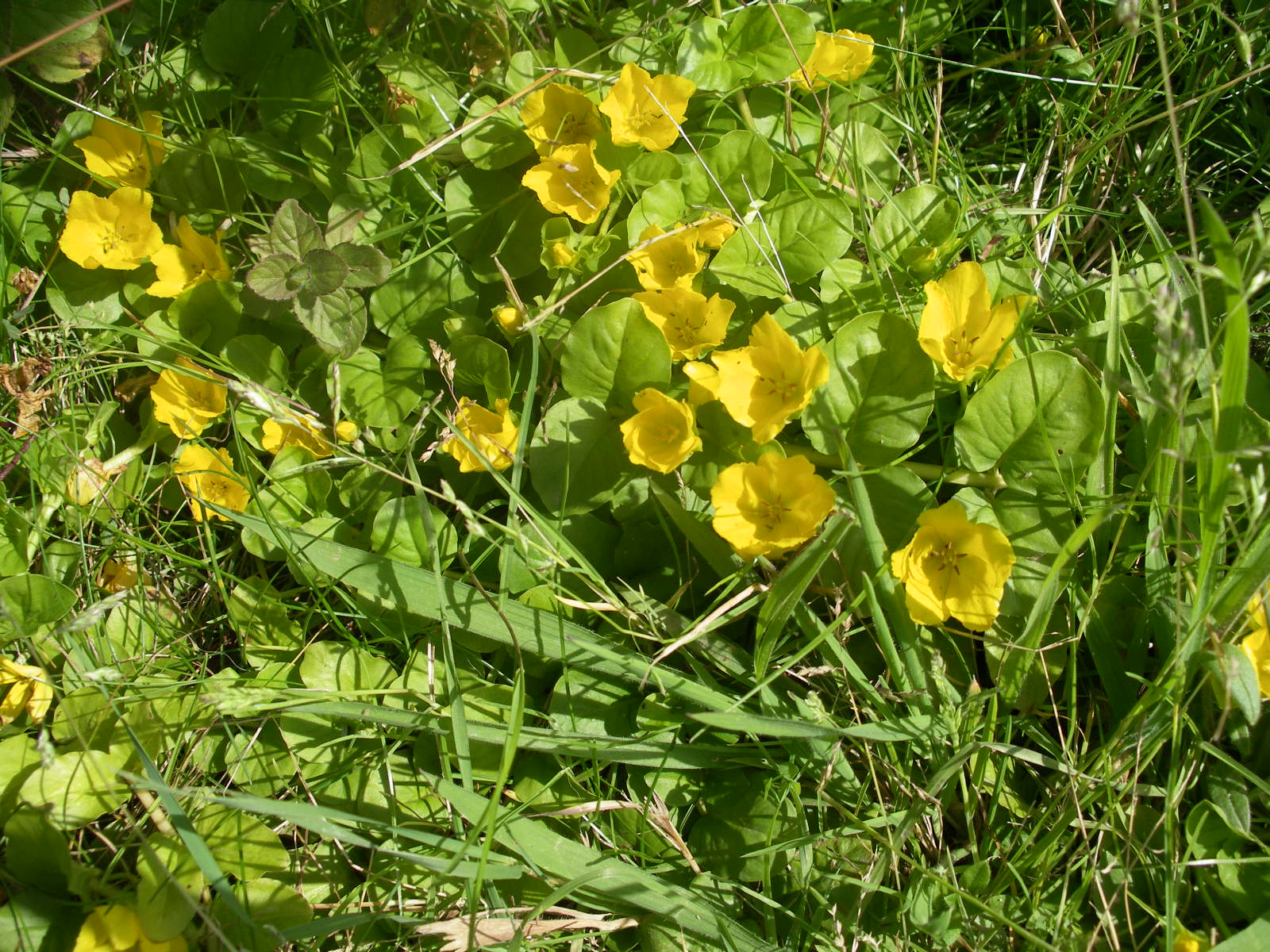 Je ne sais par quel enchantement, mais les berges de la mare sont envahies de lysimaque nummulaire.....pas de plante ajoutées ces derniéres années!