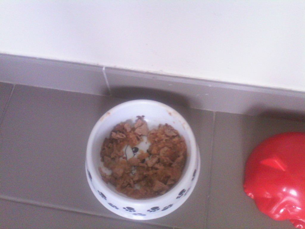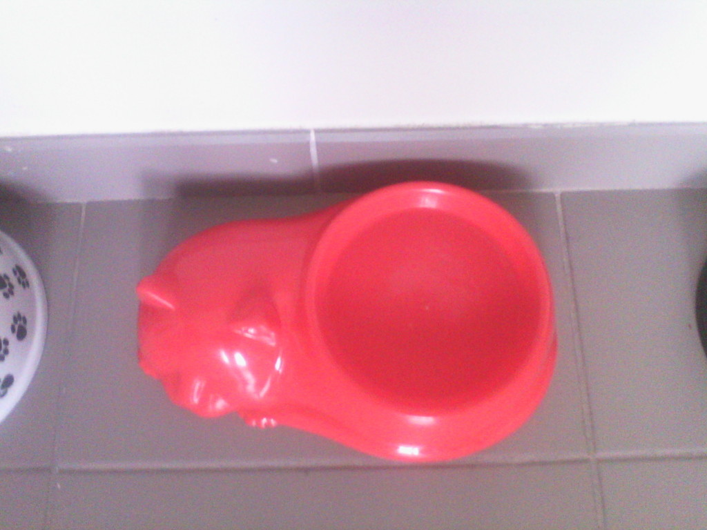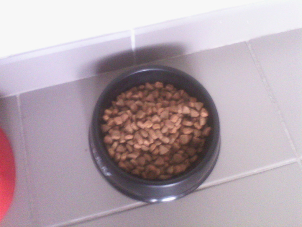 eau à dispo, croquette, dans un vieux bol plastique des enfants, par contre je donne en petite quantité, car mon chat vit dehors, avec coin douillet sur "étage"... et la petite quantité est justifiée, par .......le vol des croquettes par.....les moineaux