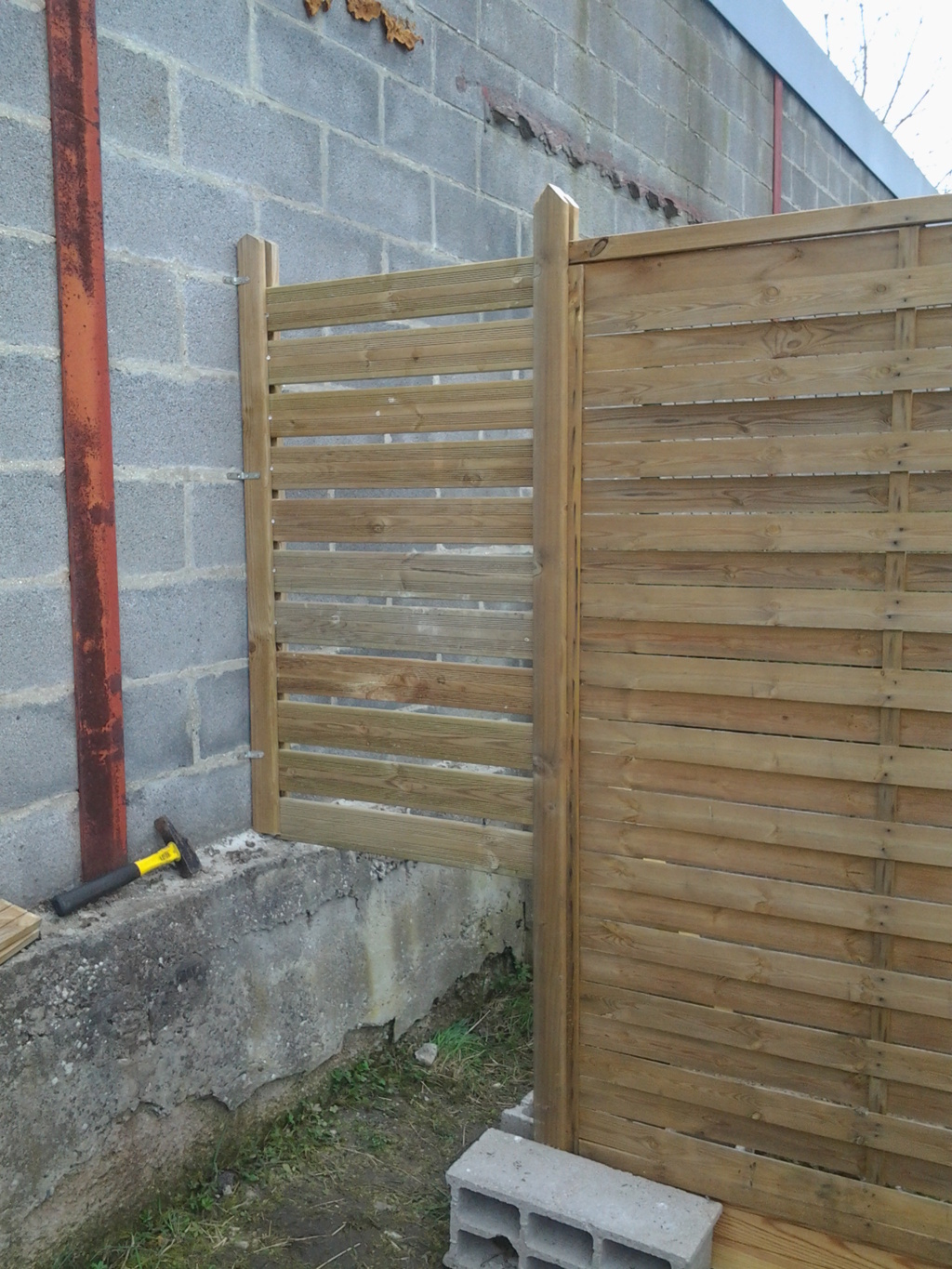 finition de la lasure de mes palissade, et préparation d'un support pour une plante grimpante