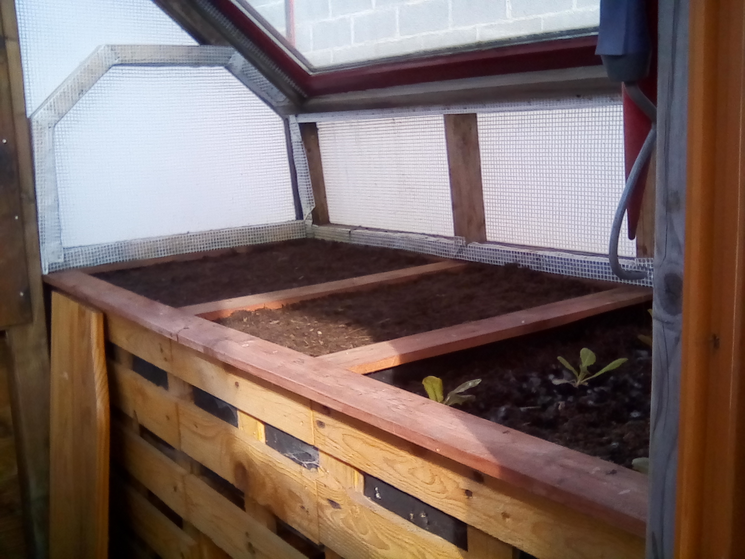 Paletman a construit une serre avec des simili vitraux. Il sème dedans direct.